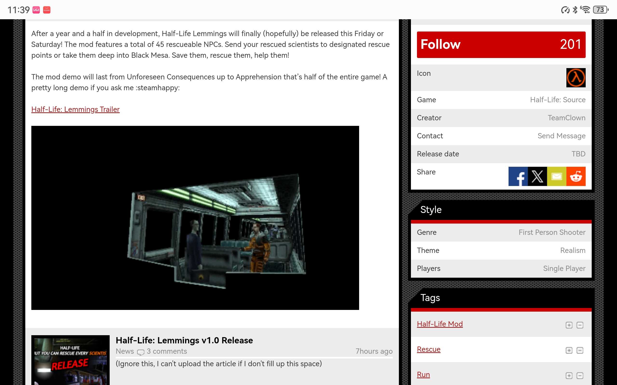 游玩注意:若想游玩请下载1.17版本的起源引擎此安装包里面已包含,以及还得去下半条命二数据包和半条命起源数据包,游玩时请在启动项写-game Half_Life_Lemmings