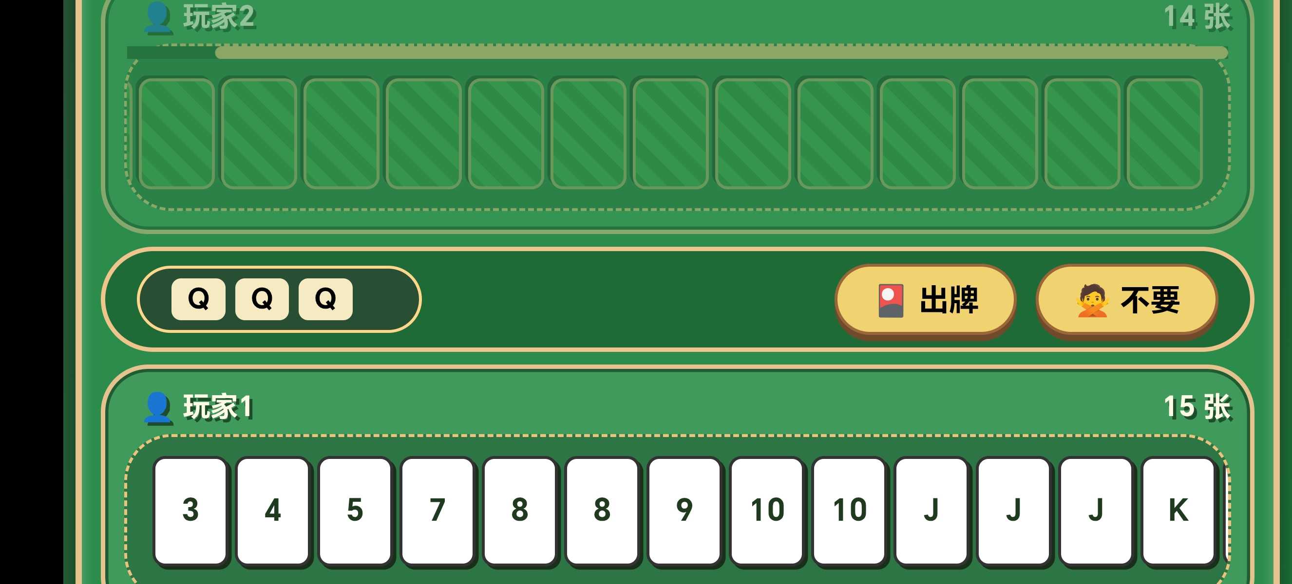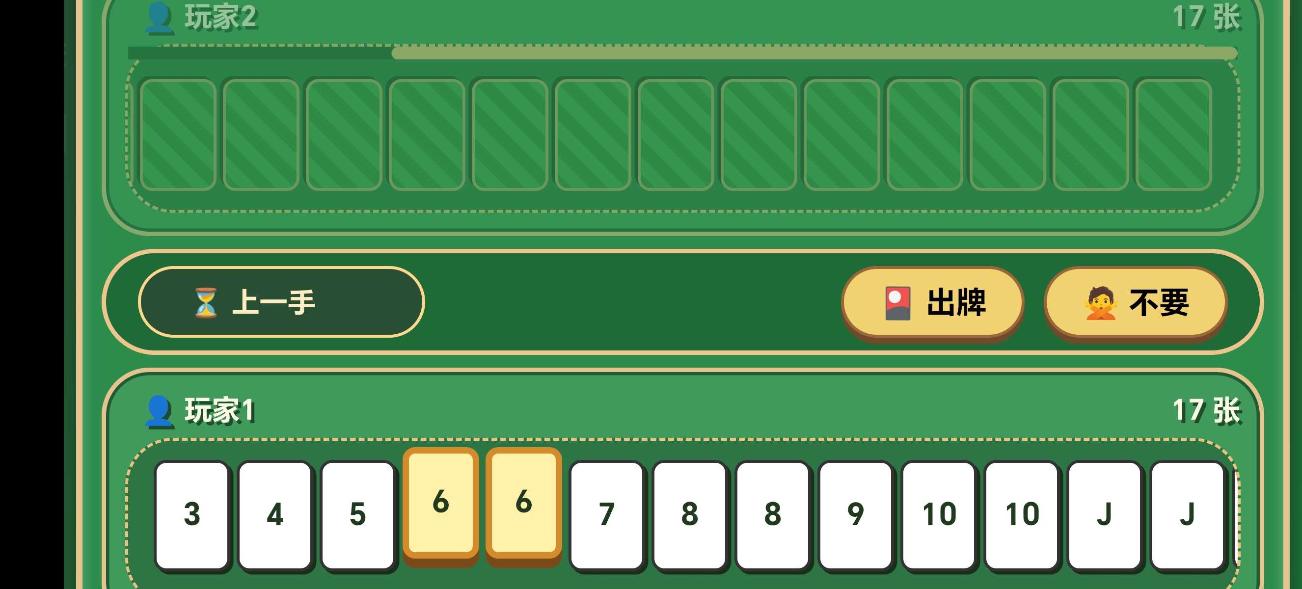 操作:点击“出牌”打出选中的牌;无法压过或不想出时点“不要”,对方获得下一轮出牌权。