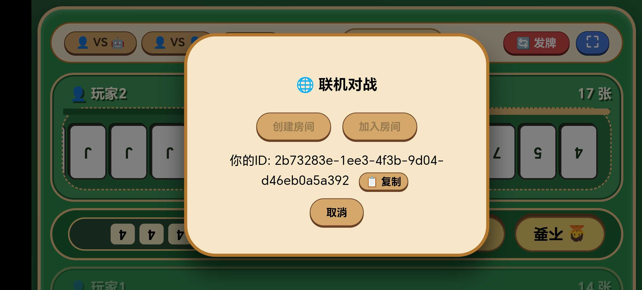 这个是我奶奶教我的扑克牌游戏,我让ai把它做成了html并合并到lua里面。目前版本是1.46,支持本地双人,ai对战,局域网联机。