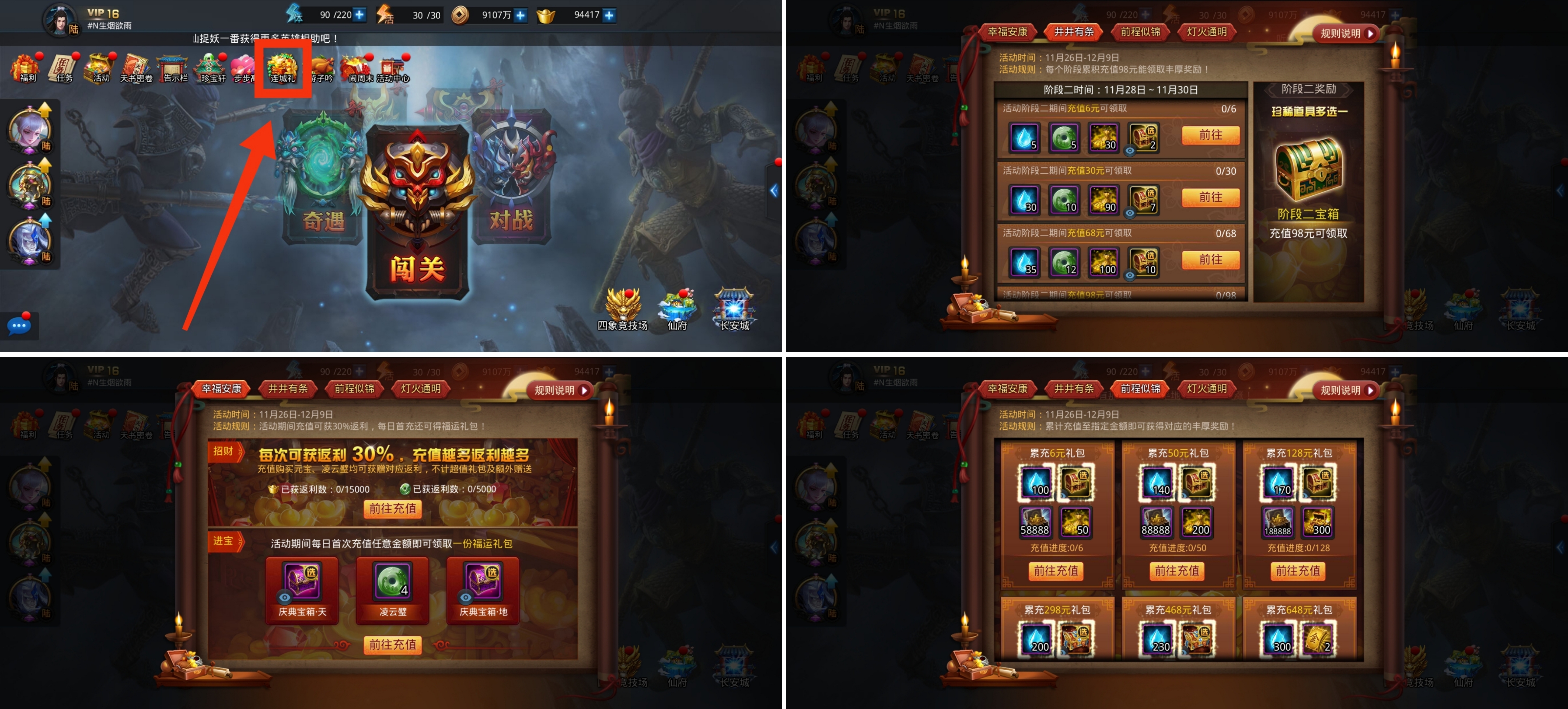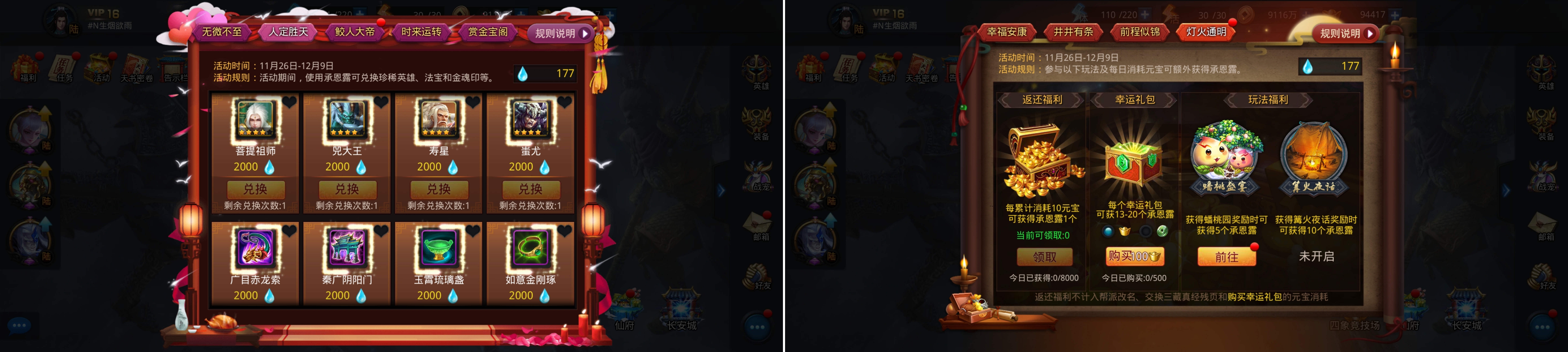 活动最后一天的时候(12月9日),如果你的元宝数目不足2w或者是承恩露不足2000,可在