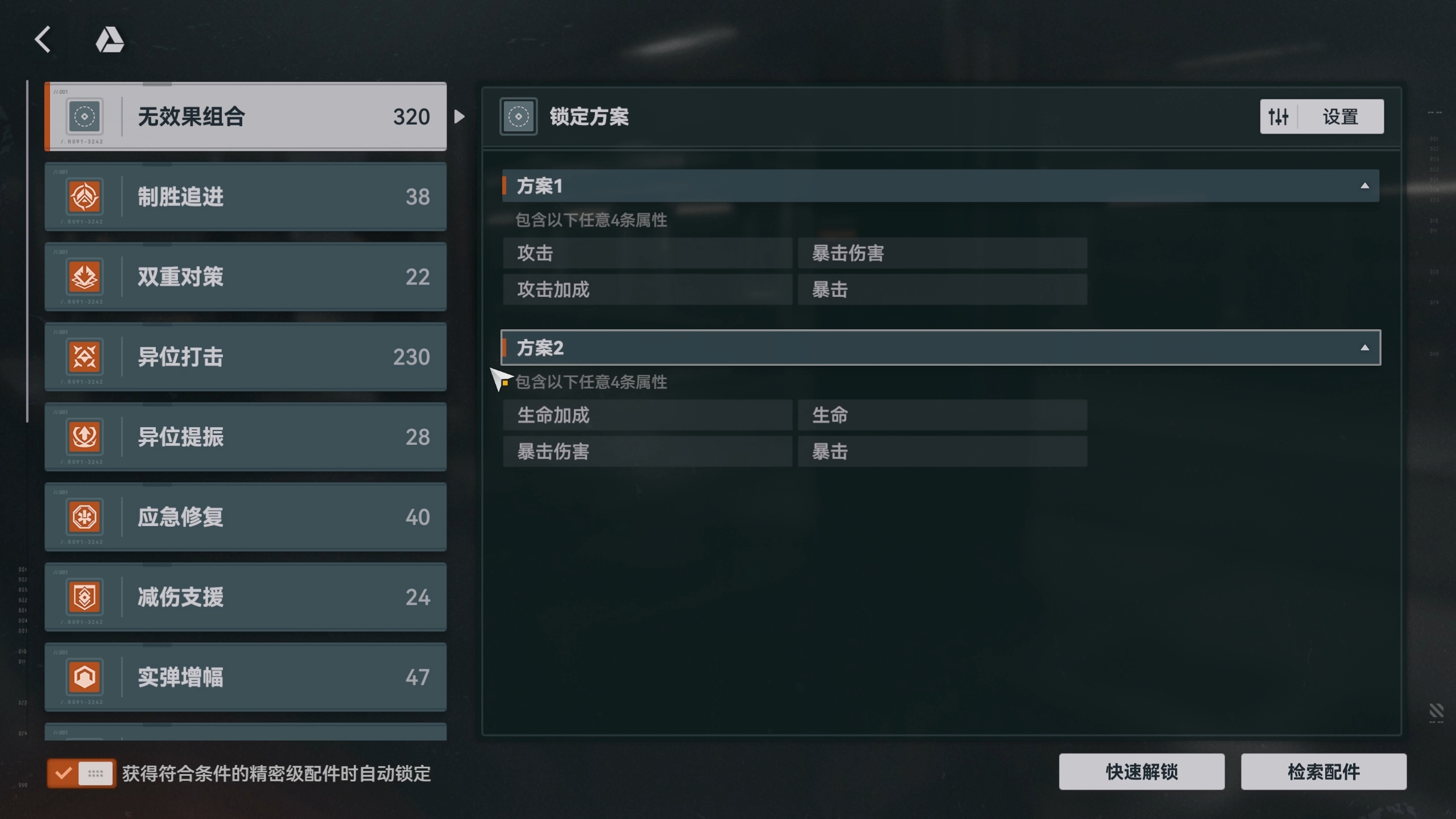 除此以外,还有很多值得称赞的优良系统。例如【配件自动锁定系统】可以按照玩家的要求自动筛选并且分解配件