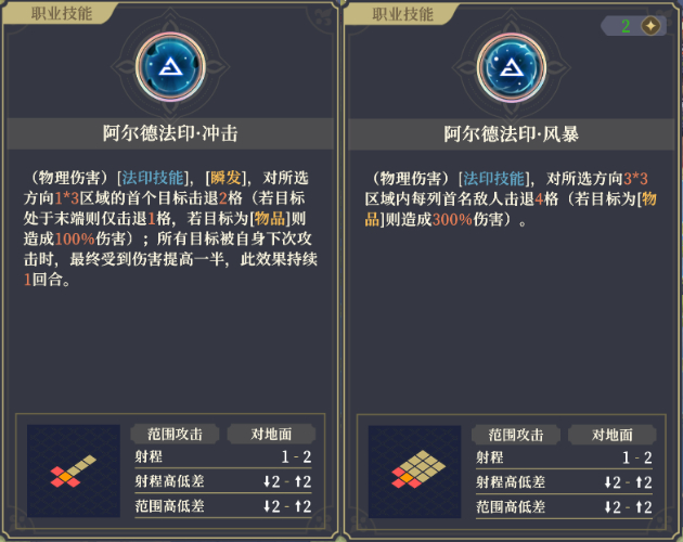 选择瞬发对周围敌人造成小额火属性魔法伤害,且在后续其他攻击后追加魔法伤害;或非瞬发对前方范围敌人造成高额火属性魔法伤害。不论如何选择,都能在技能使用前获得[穿甲]。