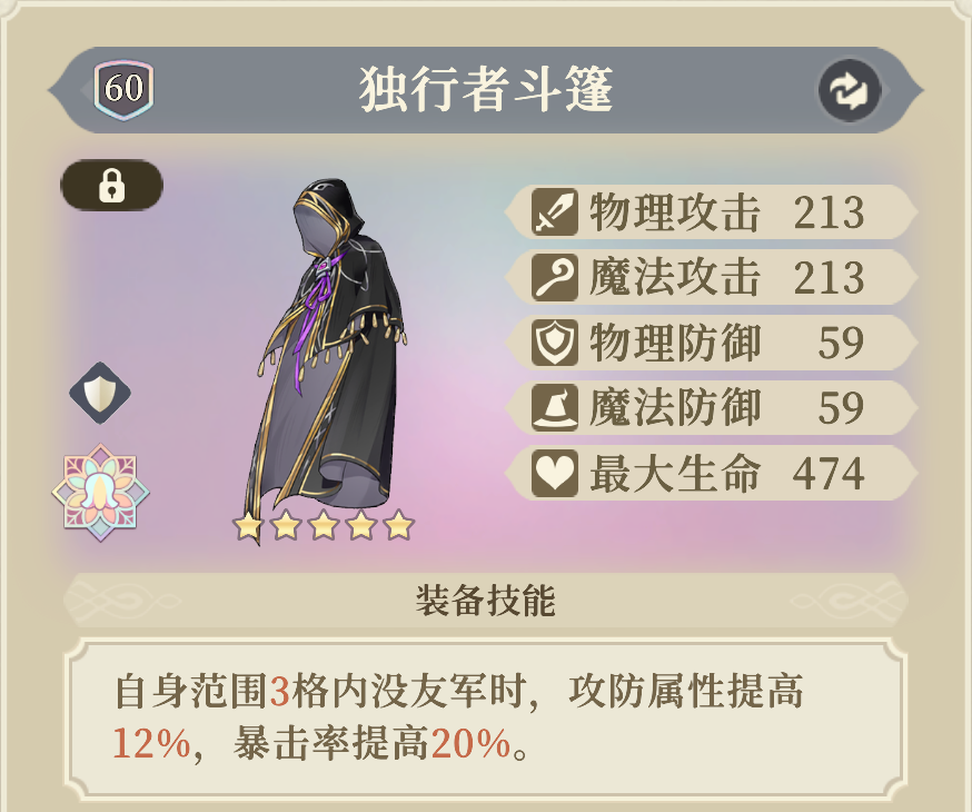 除了独行者斗篷外,还可以用诡诈之影/原时沙漏/精准表尺/守护正义之盾等装具来实现提高攻防属性的功能。