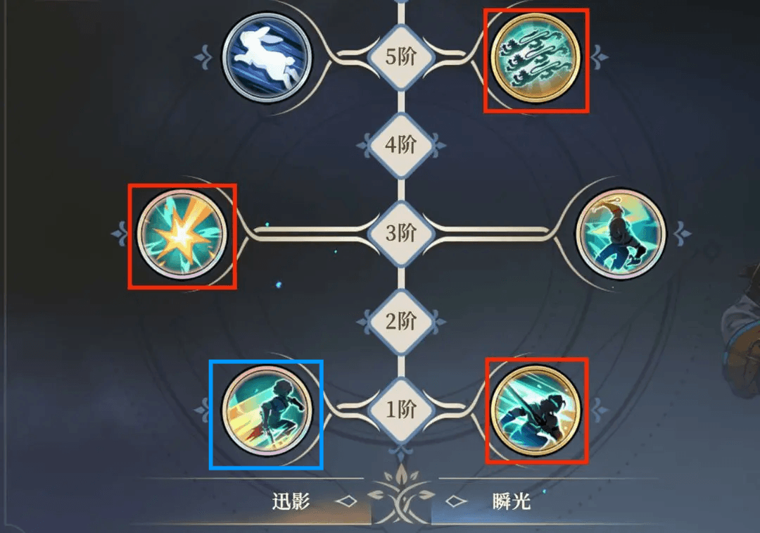 ✦ [闪现]最大射程增加 0 / 1 / 1 / 1 / 2 格,额外回复 0点 / 1点 / 2点 / 3点 / 全部 能量,- / - / 缩减所有技能冷却1回合 / 缩减所有技能冷却2回合 / 重置所有技能冷却时间。