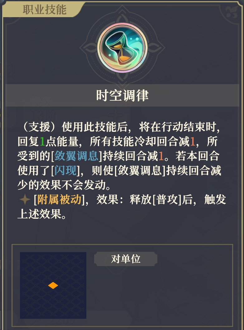 回复能量并缩减冷却,若本回合没有使用[闪现],还可以额外减少[敛翼调息]的持续时间。