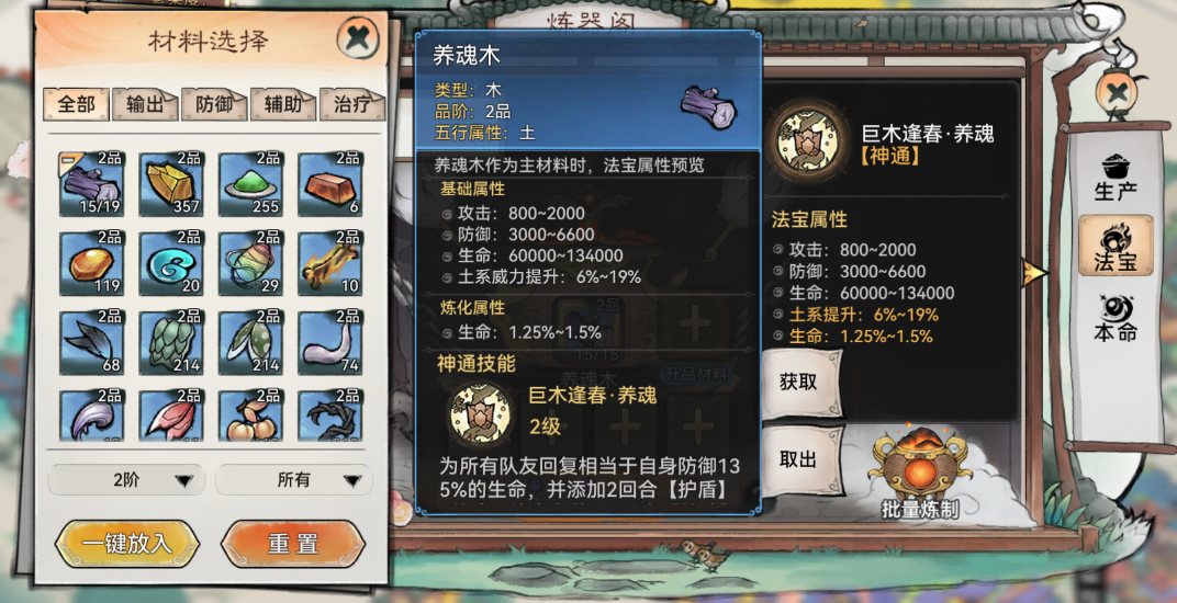 银无月法宝的不二之选,高额的护盾与恢复,且还会给自己增加“护魂”效果,500的蓄力值能很快叠满,在配合兵的红色天命进一步提升自己的生存能力。