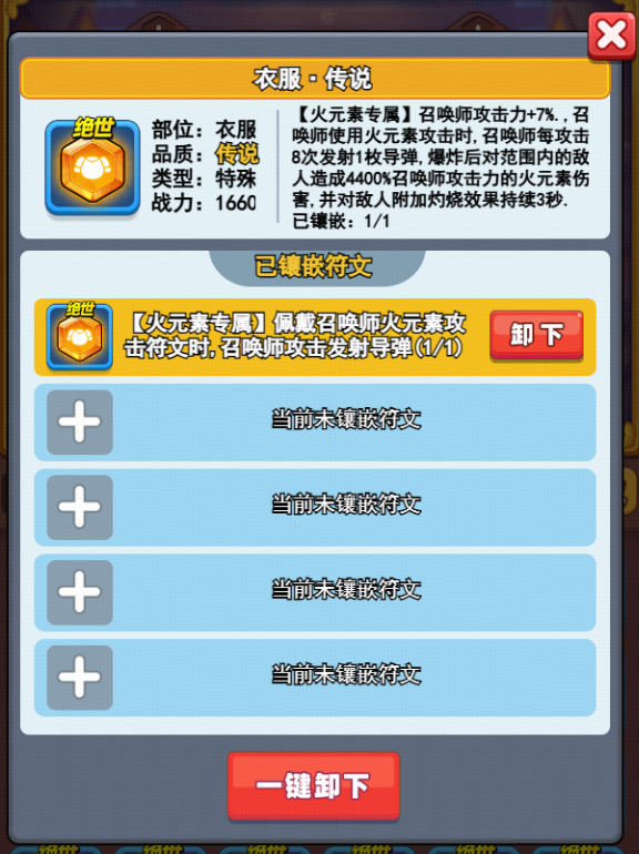 1、佩戴带有【攻击·唯一】标志的符文即可使召唤师在战斗内进行攻击,多种攻击符文随心更换!