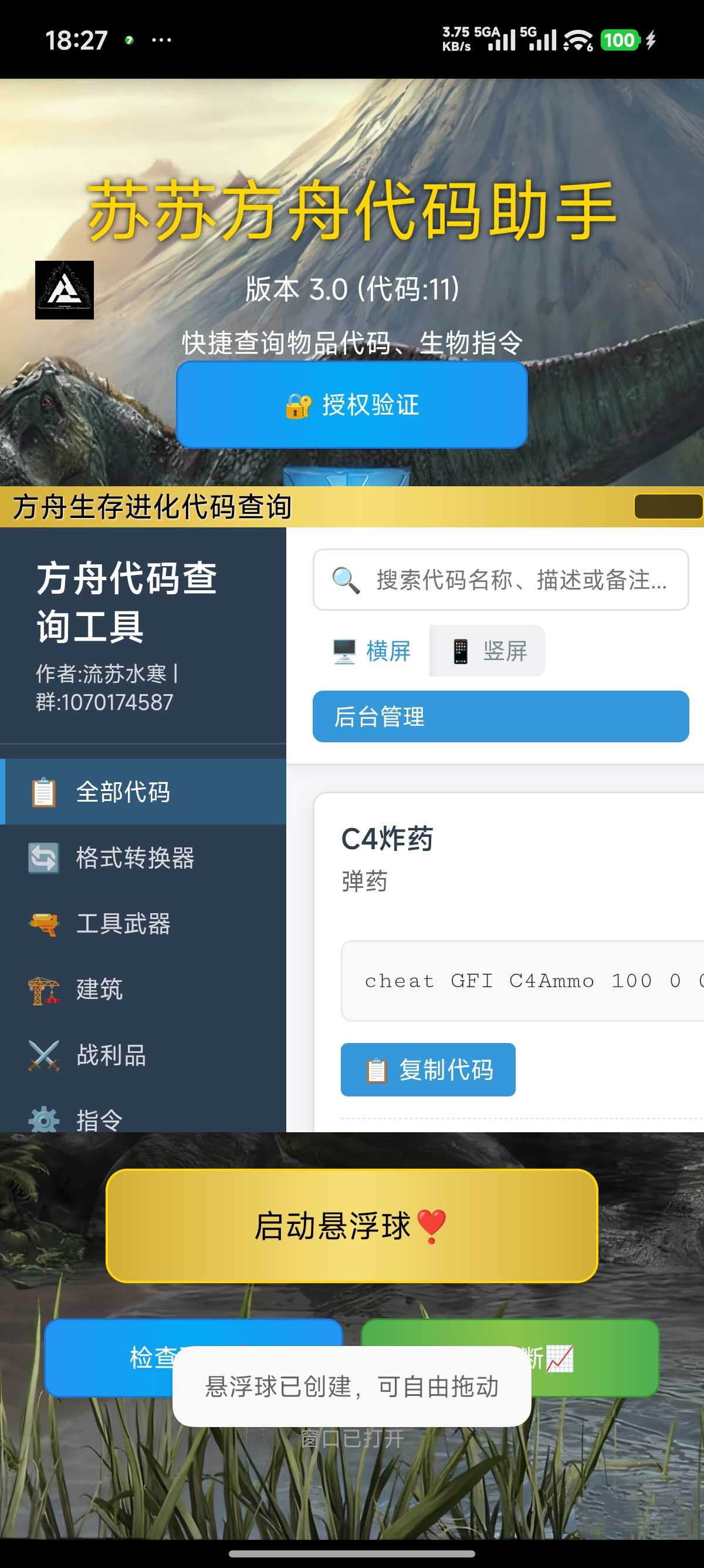 包含2000+方舟实用代码,分为10几种分类,包含搜索直达,合适转换等,悬浮窗版请进**
